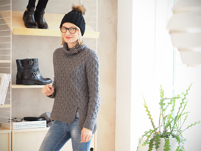 Tässä muutama erilainen asu jonka kokosin tuon ihanan neuleen ympärille.