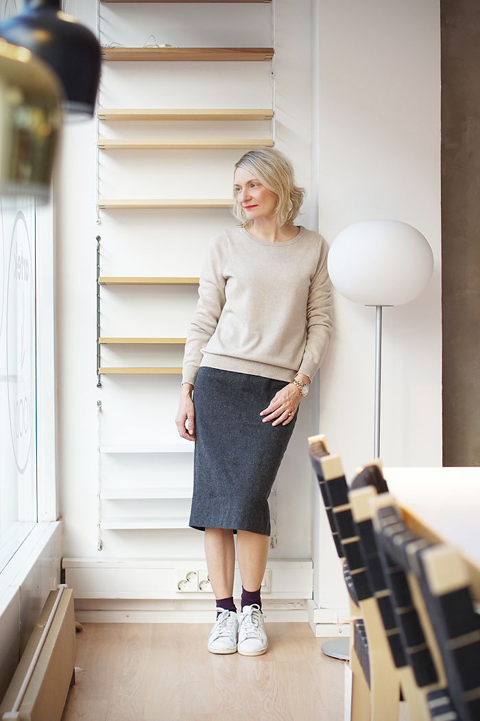 Olen päättänyt opetella käyttämään enemmän hameita. Yksinkertainen kasmirneule käy yhdistää joko tällaiseen rentoon hameasuun, tai toisaalta vaikka juhlaan. Hieno neulepaita asustaa upeasti myös vaikkapa leveää taftihametta, asun voisi koristaa näyttävällä statement-kaulakorulla. Myös mekon päälle voi sujauttaa kevyen neulepaidan.