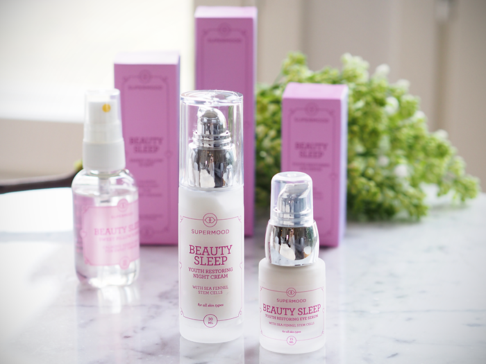 Pääsin heti tuoreeltaan testaamaan sarjan uutuuksia - yövoidetta, silmänympärysvoidetta ja Beauty Sleep-yötuoksua. Sarja on ihanan ylellinen, sen vaikuttavana aineena on käytetty mm. merifenkolin kantasolu-uutetta.