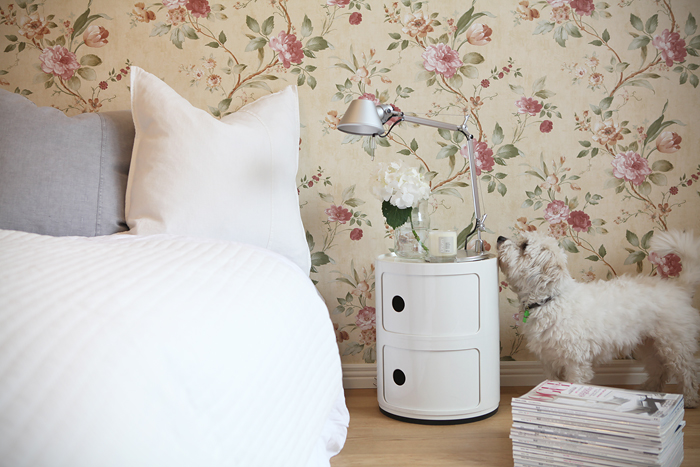 Kukkatapetit on vieläkin minusta ihania, nytkin tuijottelen omaani välillä kun tätä naputtelen. Taidan olla vähän romantikko, vaikka simppelin tyylisuunnan edustaja olenkin. Lettusta kiinnostaa kaikki, oli kovasti apuna järkkäilyhommissa.