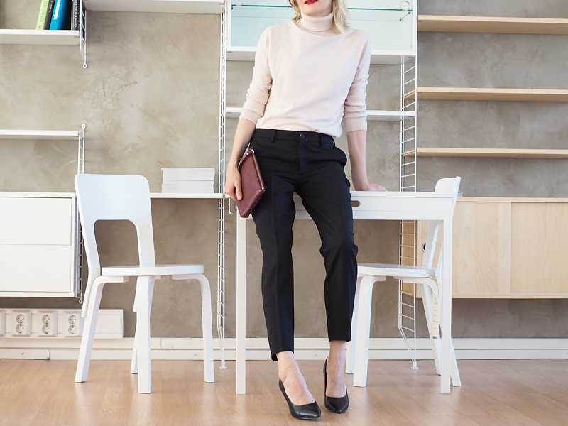 Olen aina ihaillut hyvin leikattuja housupukuja, Tiger of Swedenillä ja Filippa K:lla on aivan ihania bleisereitä, housuja ja hameita, joista muodostaa työpuvustolle perustan. Tällainen laadukas jakkupuku menee monta vuotta käytössä.